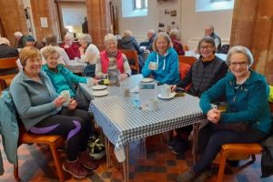 A group of cyclists from West of Bridgwater regularly drop in to the Community Café at The Huntspill Hub. They enjoy cycling within a 10-mile radius of Bridgwater, and especially like the flat ground of the Somerset Levels. As well as the friendly welcome and delicious cake, they appreciate the bicycle featured on the seat outside the church. For Carol Birkenhead, their well-earned rest is also a trip down memory lane, as she was married at the church in the 1970s. The Café is run entirely by local volunteers who bake cakes, serve, wash up etc. Tea, coffee and cake are provided for all who come, and the running costs (including heating and cleaning) are met by everyone making donations on a ‘give as you can’ basis. Attendance varies, but is regularly 50+, and ages range from youngsters to seniors. No matter how many come, there is always room for more, so if you haven’t tried it out yet – do come along!